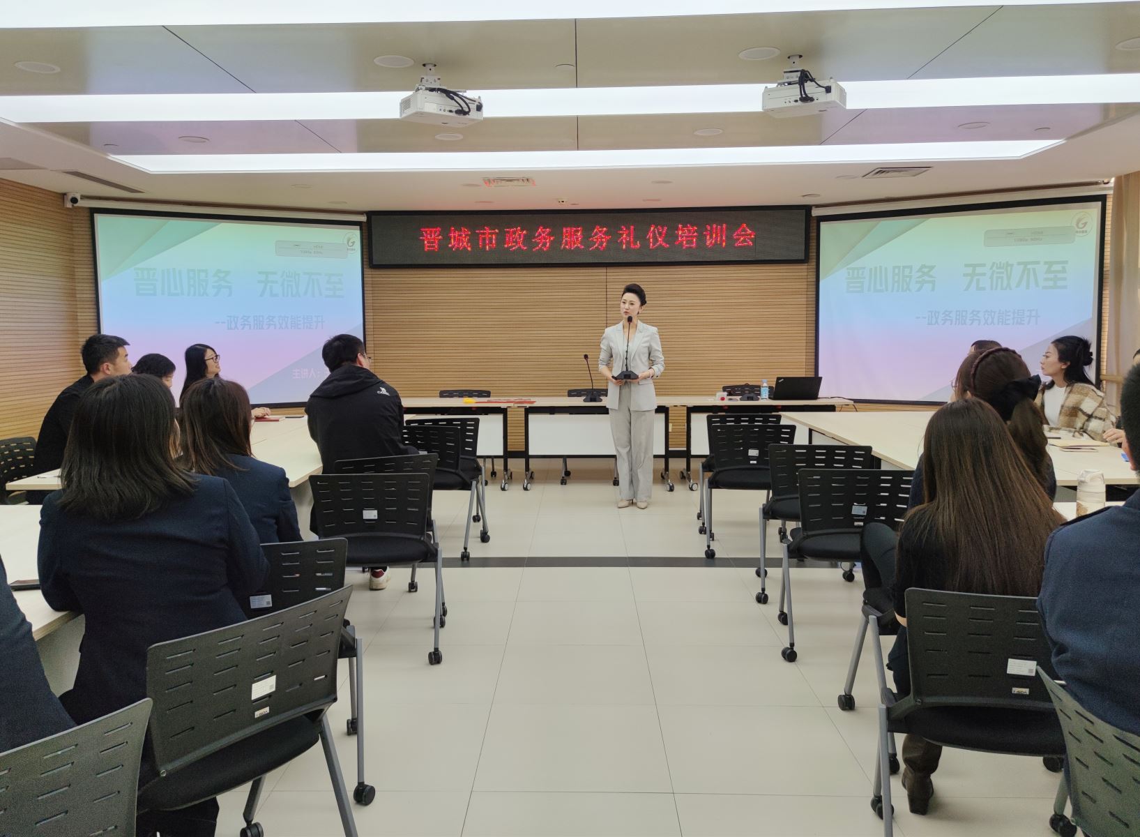 為進(jìn)一步提升政務(wù)服務(wù)標(biāo)準(zhǔn)化、規(guī)范化水平,推動(dòng)全市政務(wù)服務(wù)事項(xiàng)“全域通辦”標(biāo)準(zhǔn)化工作高效落地,2025年11月13日,晉城市政務(wù)服務(wù)中心組織各窗口單位及業(yè)務(wù)科室工作人員開展政務(wù)服務(wù)禮儀專題培訓(xùn)。本次培訓(xùn)由市政務(wù)服務(wù)中心主任白彬利主持,特邀麥斯達(dá)夫禮儀培訓(xùn)專家王穎授課。